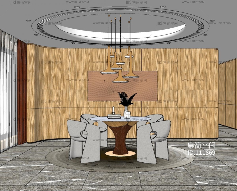 现代餐桌椅组合包间,包房 su草图模型下载 [模型ID:111869]