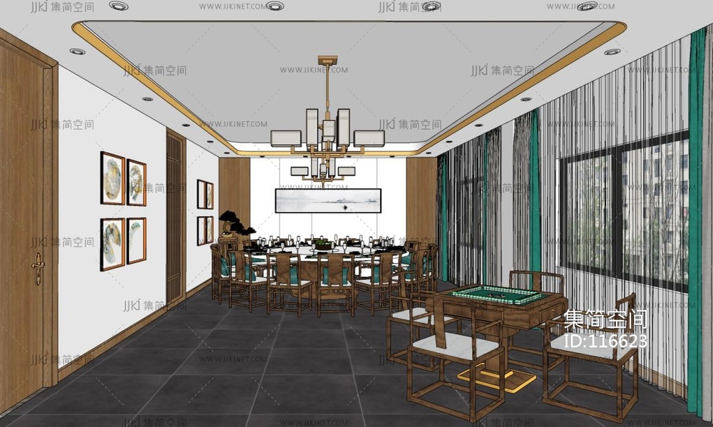 新中式饭店包间, su草图模型下载 [模型ID:116623]