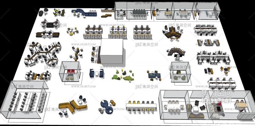 现代办公家具组合 su草图模型下载 [模型ID:117141]