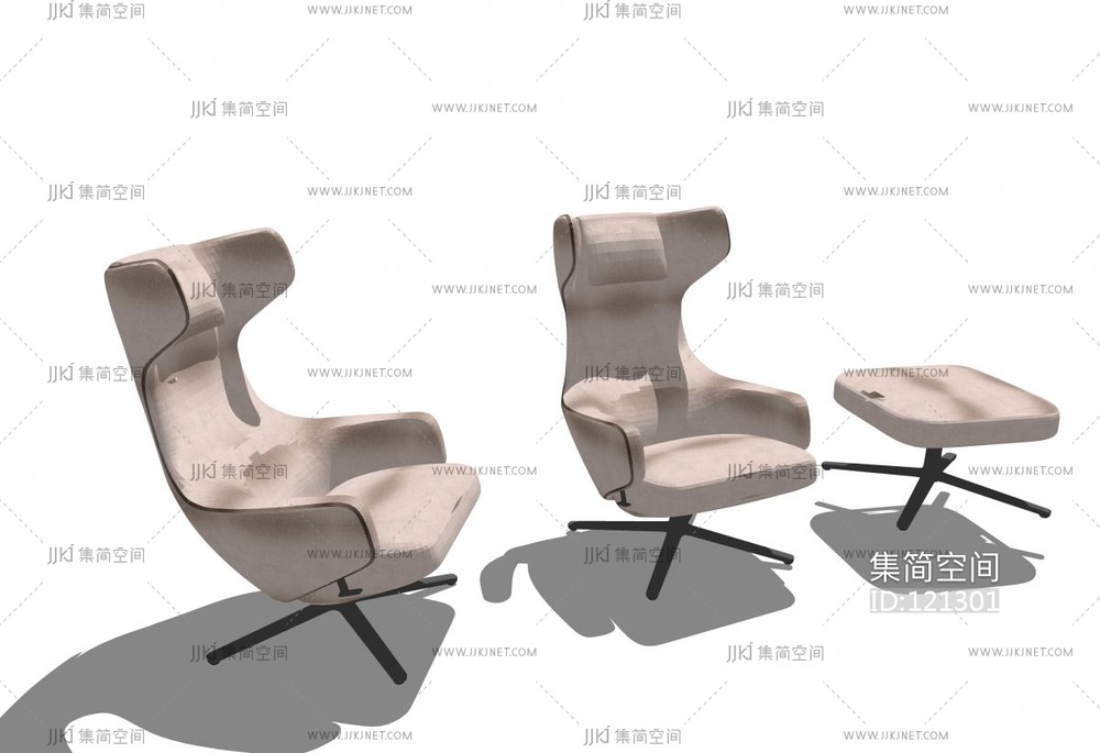 现代简约休闲椅,办公椅,脚凳蛋壳椅 su草图模型下载 [模型ID:121301]