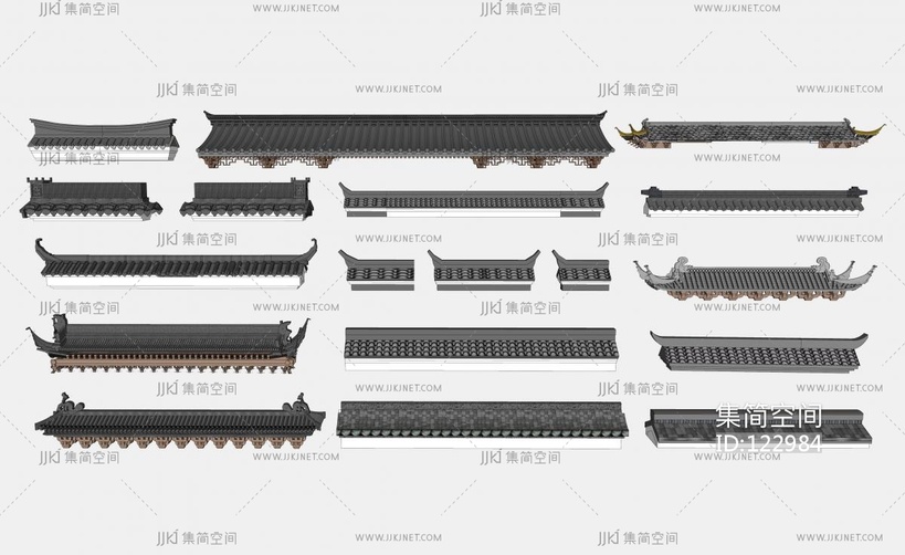中式屋檐_飞檐_瓦片_屋脊_建筑屋顶_檐线su草图模型下载