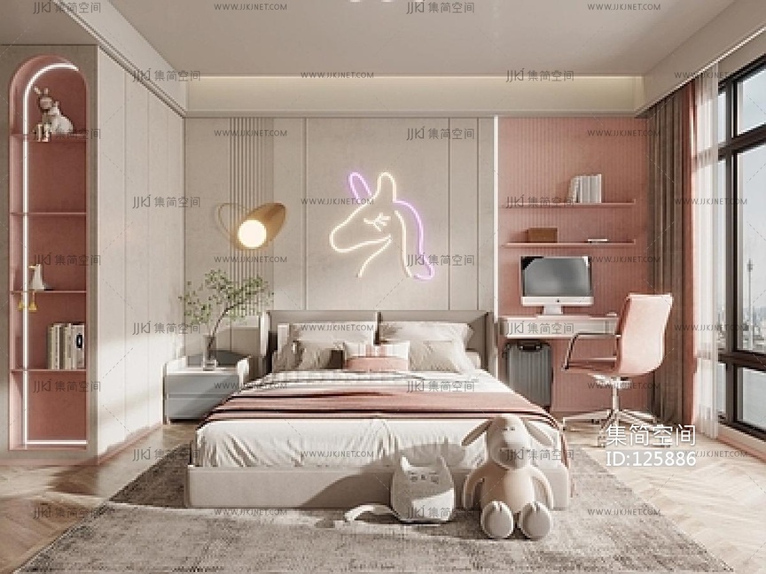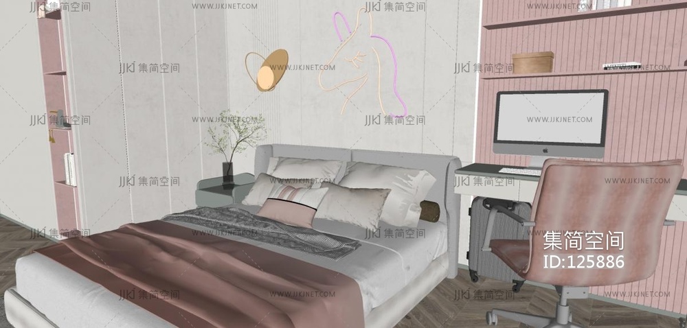 现代女孩儿童房 su草图模型下载 [模型ID:125886]