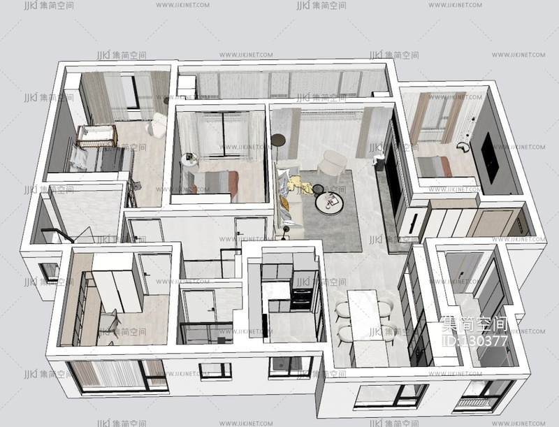 现代风格全套家装空间su草图模型下载