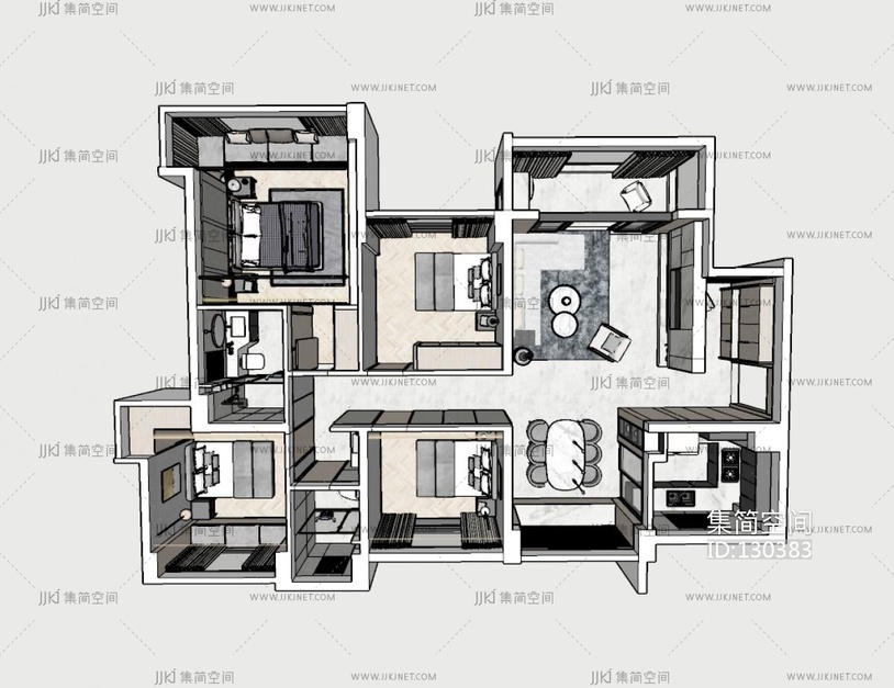 现代风格全套家装空间su草图模型下载