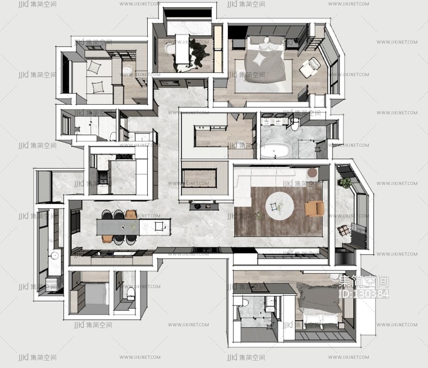 现代家装鸟瞰SU模型 su草图模型下载 [模型ID:130384]
