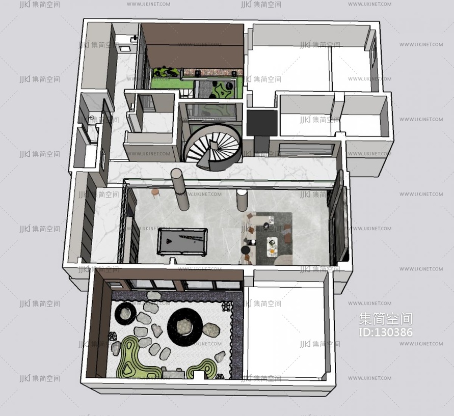 现代别墅家装鸟瞰_地下室SU模型 su草图模型下载 [模型ID:130386]