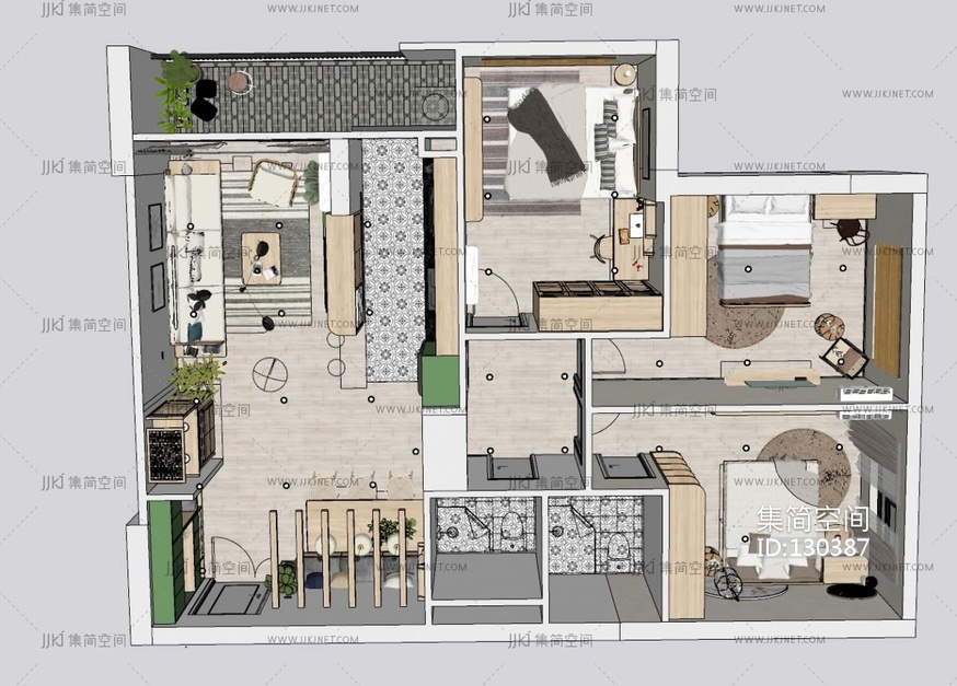 日式风格家装鸟瞰SU模型 su草图模型下载 [模型ID:130387]