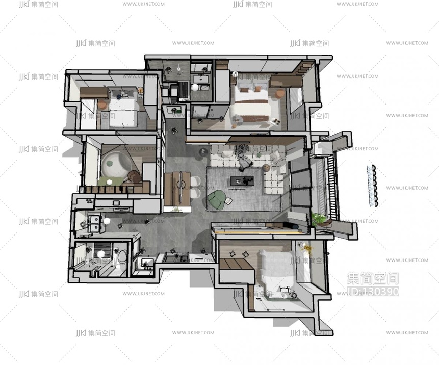 现代家装鸟瞰 su草图模型下载 [模型ID:130390]