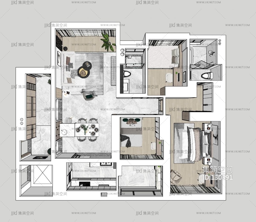 现代风格客餐厅 su草图模型下载 [模型ID:130391]