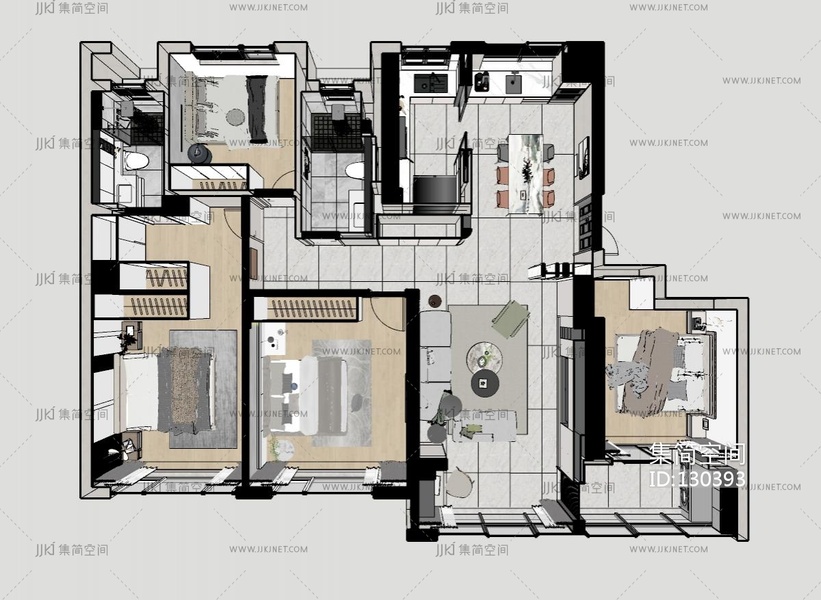 现代家装鸟瞰_ su草图模型下载 [模型ID:130393]