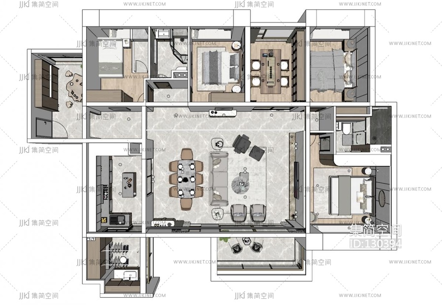 现代家装鸟瞰 su草图模型下载 [模型ID:130394]