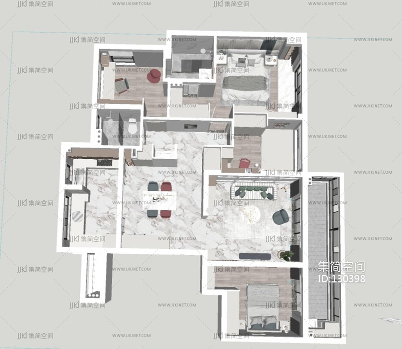 法式风格客餐厅SU模型 su草图模型下载 [模型ID:130398]