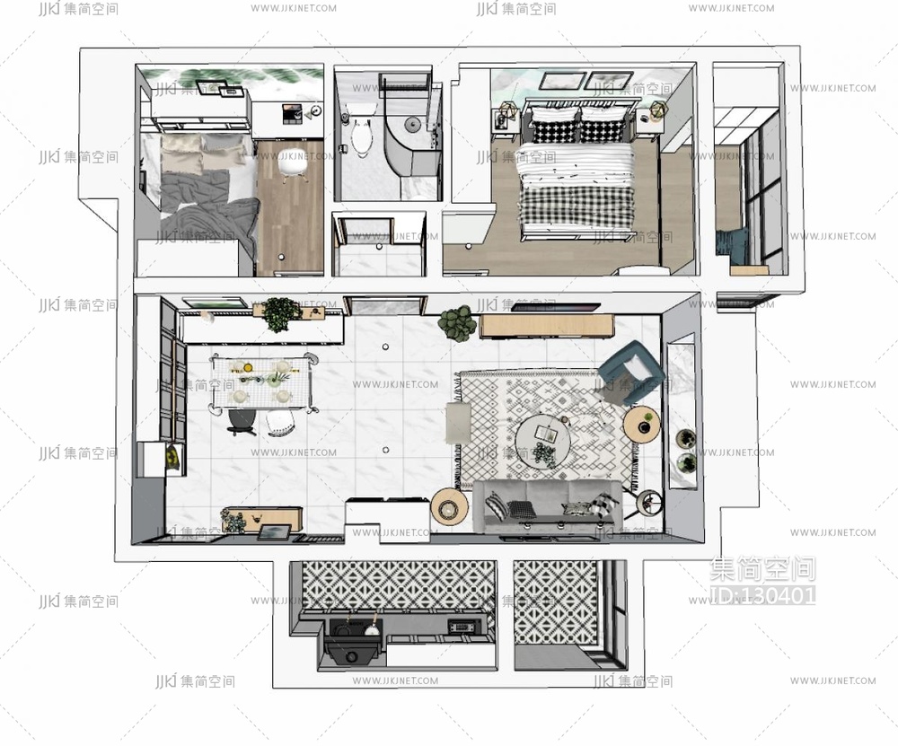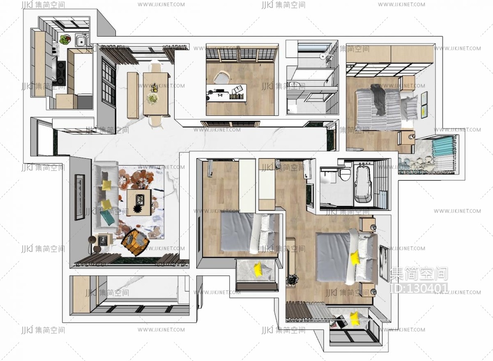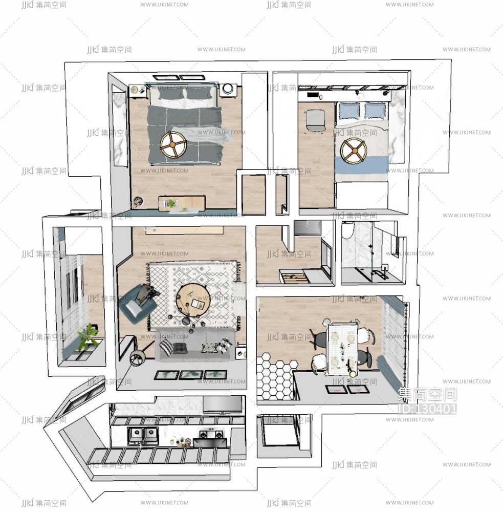 北欧风格家装整体方案SU模型 su草图模型下载 [模型ID:130401]