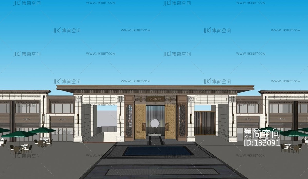 新中式住宅小区入口大门su草图模型下载 su草图模型下载 [模型ID:132091]