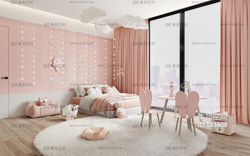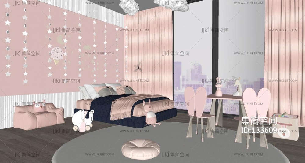 现代女儿房儿童房su模型 su草图模型下载 [模型ID:133609]