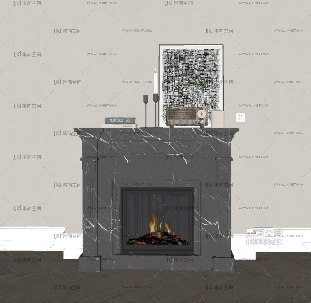 欧式壁炉摆件 su模型 su草图模型下载 [模型ID:133748]
