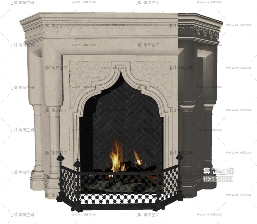 欧式壁炉su模型 su草图模型下载 [模型ID:133834]