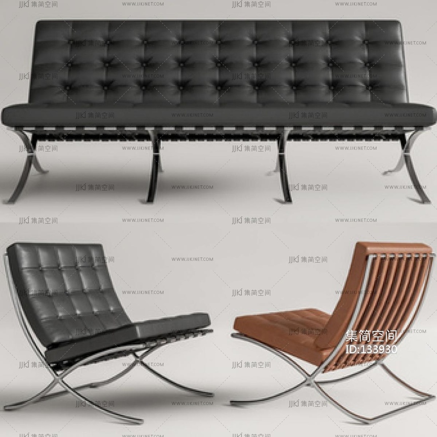 现代巴塞罗那休闲椅su模型su草图模型下载