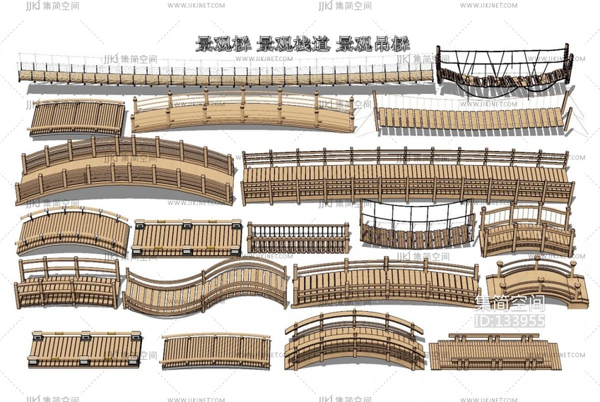 木桥 吊桥 拱桥,木吊桥su模型su草图模型下载