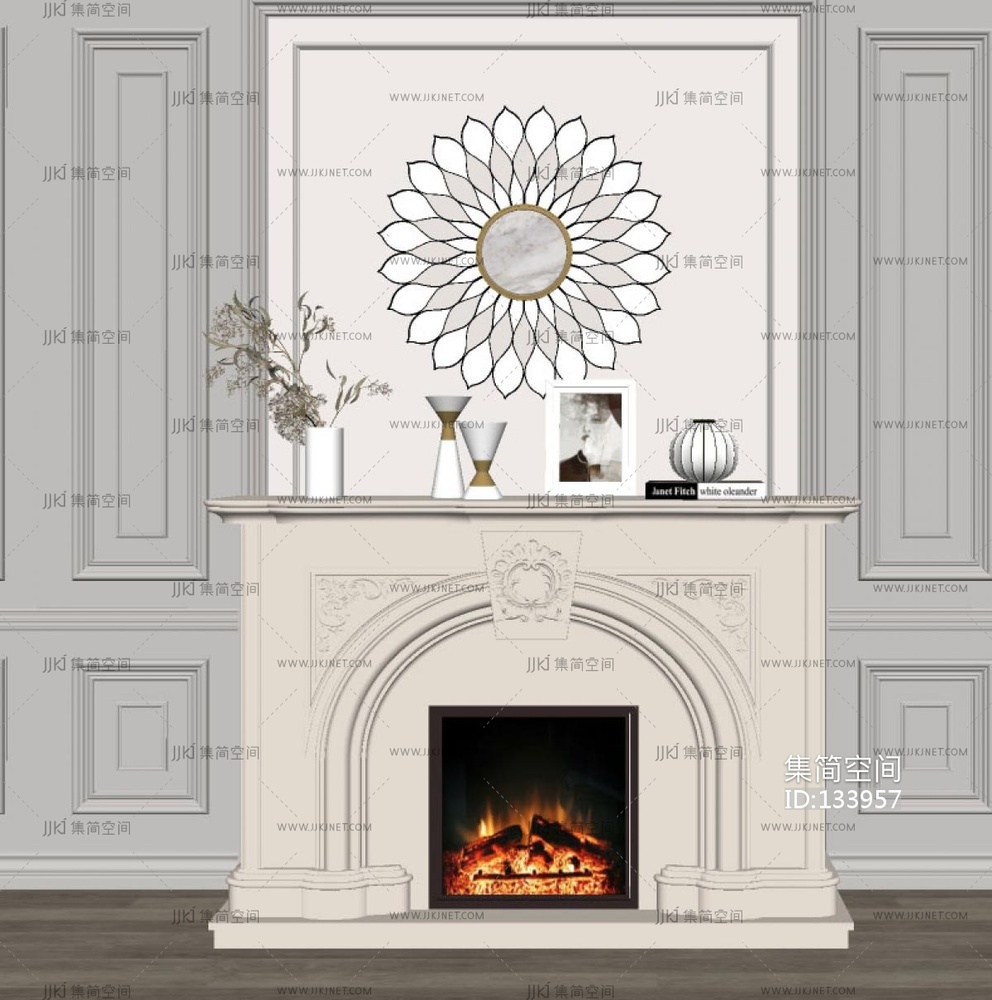 -美式 壁炉su模型su草图模型下载