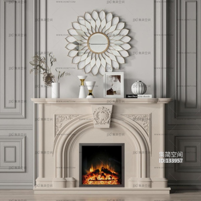 欧式风格壁炉su草图模型下载