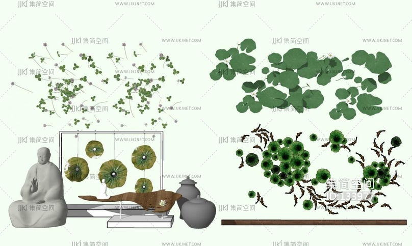 中式景观小品荷叶莲花小品 禅意雕塑荷叶金鱼su模型 su草图模型下载 [模型ID:133977]