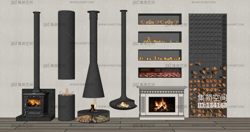 现代壁炉组合柴SU模型su草图模型下载