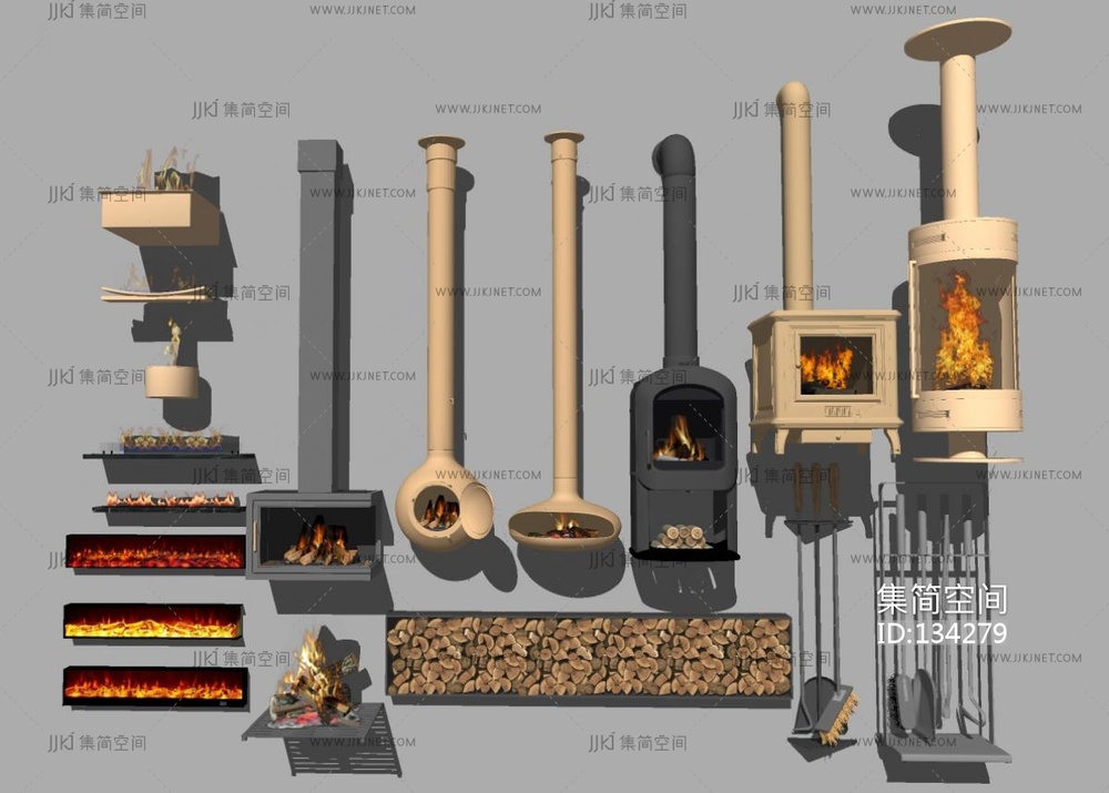 壁炉 火炉 柴火su模型 su草图模型下载