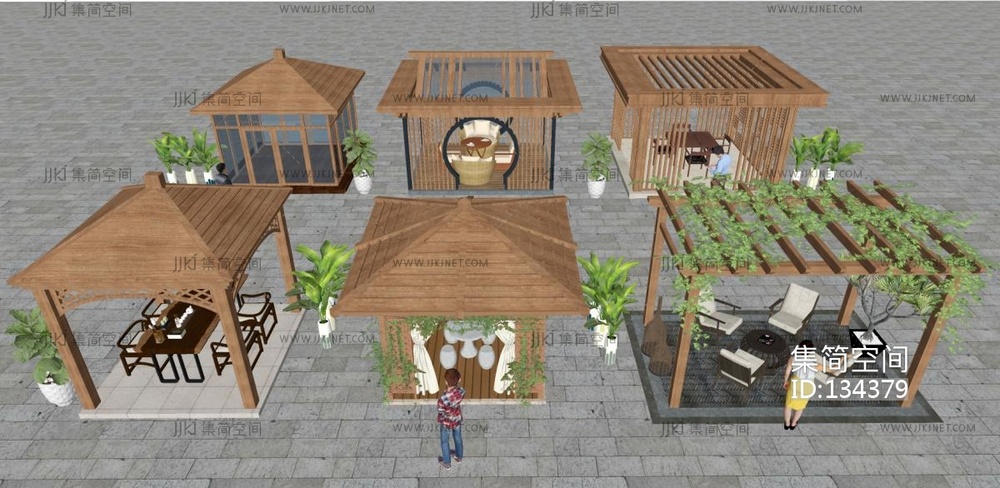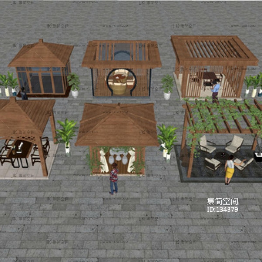 新中式亭子 凉亭廊架su模型 su草图模型下载 [模型ID:134379]