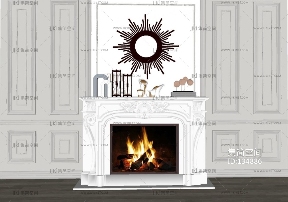 简欧壁炉摆件su模型 su草图模型下载 [模型ID:134886]