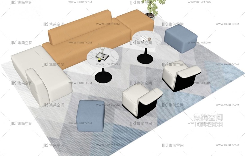 现代办公沙发,沙发区su模型 su草图模型下载 [模型ID:134963]
