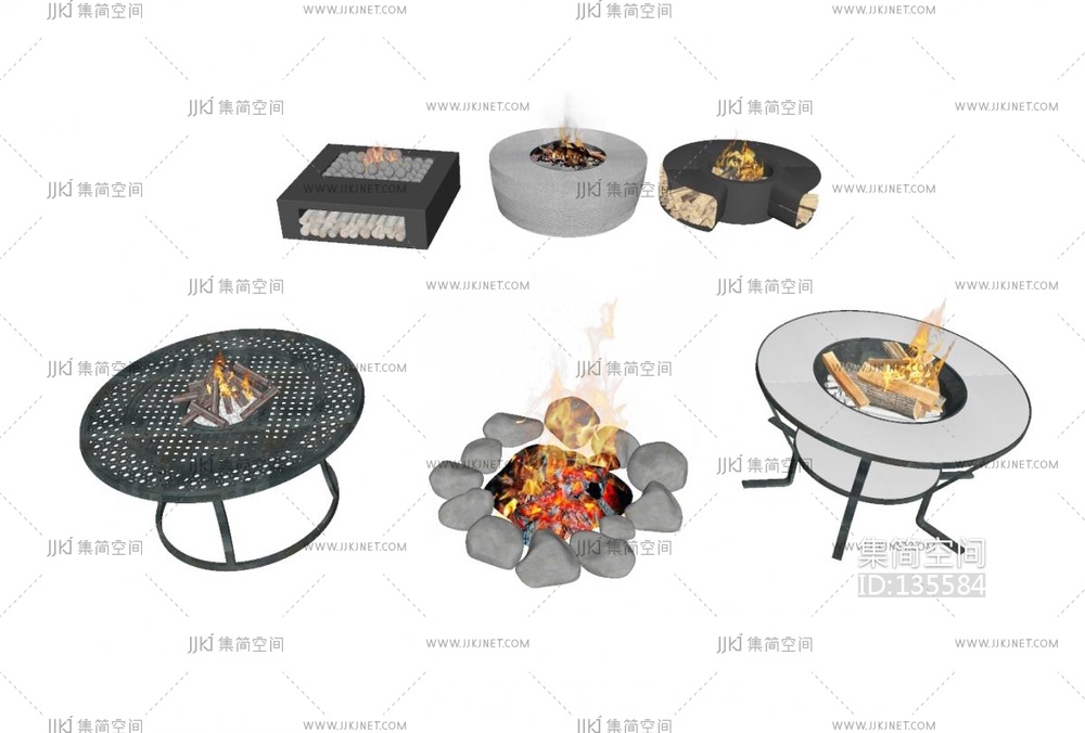 现代户外露营篝火,火盆火堆su模型 su草图模型下载 [模型ID:135584]