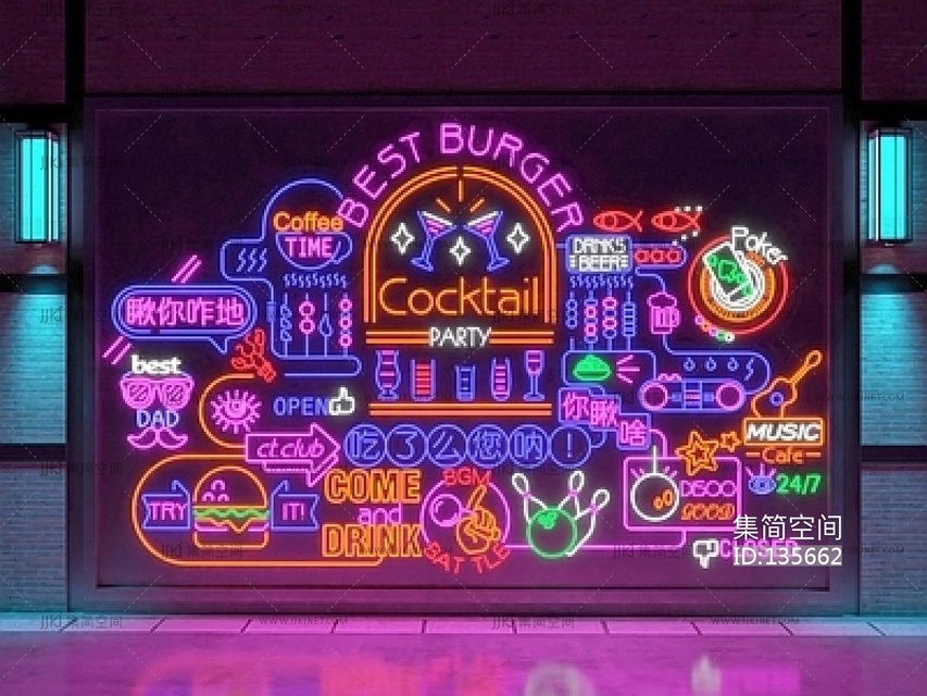 现代霓虹灯组合SU模型 su草图模型下载 [模型ID:135662]