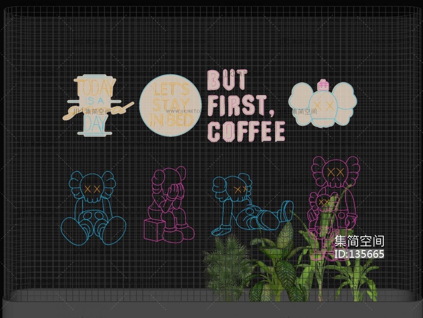现代霓虹灯装饰灯SU模型 su草图模型下载 [模型ID:135665]