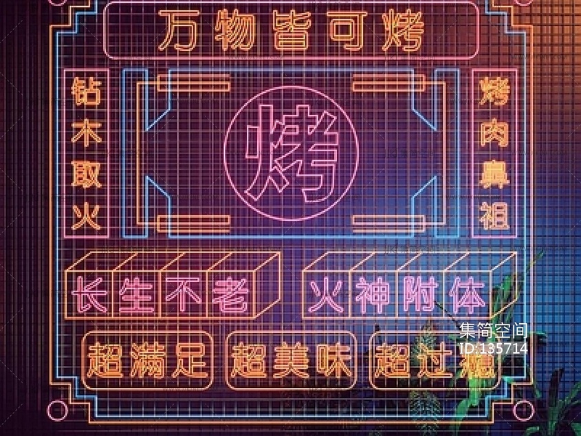 现代烧烤店霓虹灯,文字装饰灯SU模型 su草图模型下载 [模型ID:135714]