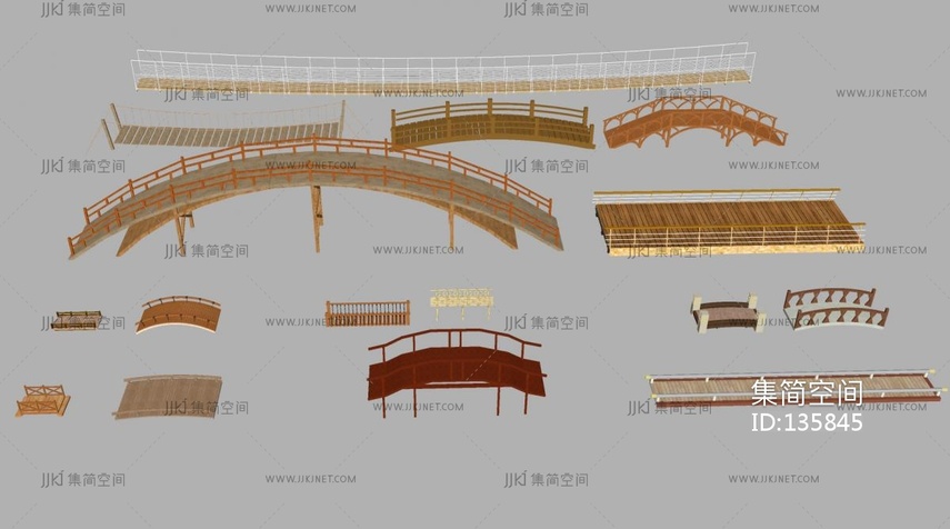 木桥 吊桥 拱桥,木吊桥su模型 su草图模型下载 [模型ID:135845]