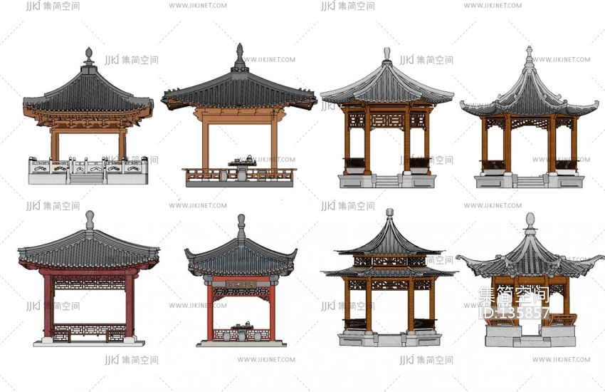中式古建凉亭亭子su模型 su草图模型下载 [模型ID:135857]