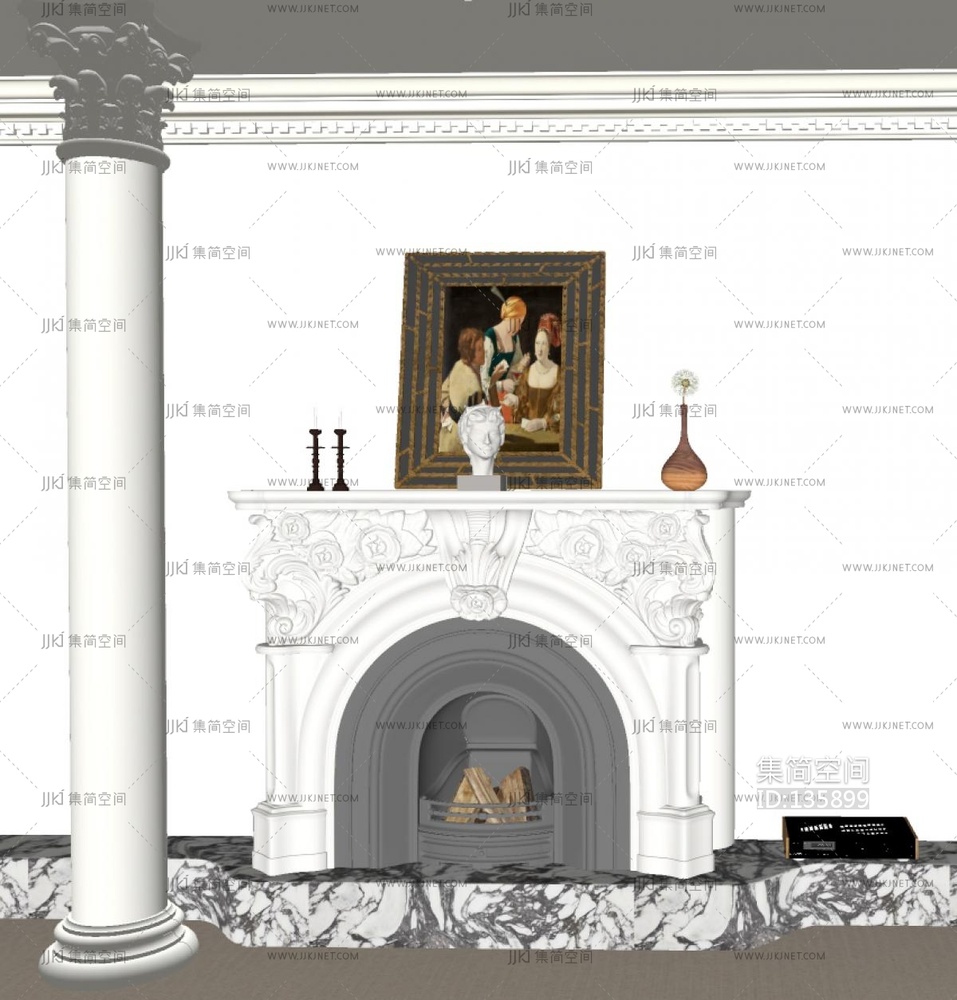 欧式法式古典壁炉su模型 su草图模型下载 [模型ID:135899]