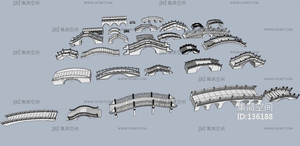 新中式桥,石拱桥su模型 su草图模型下载 [模型ID:136188]