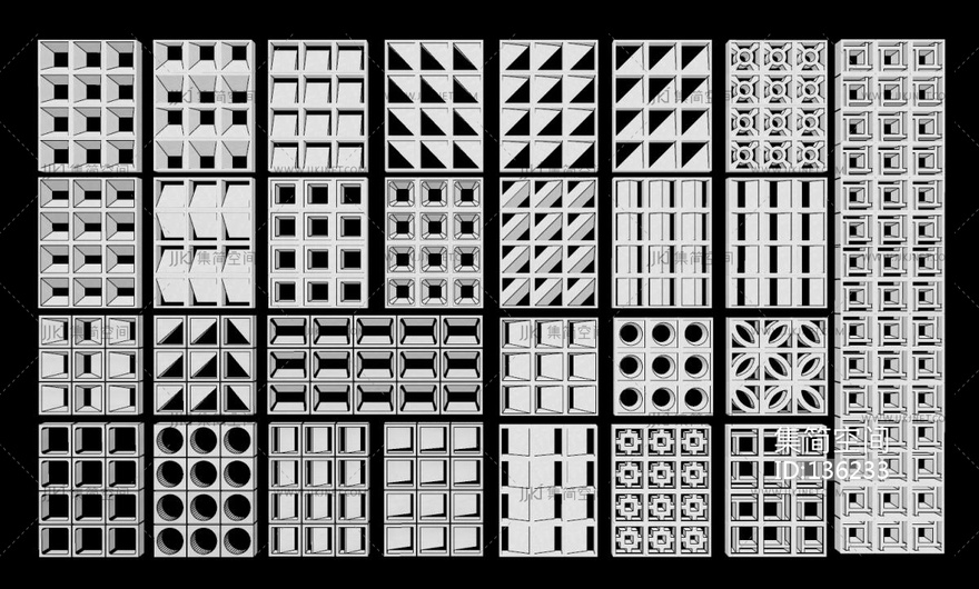 现代水泥镂空隔断SU模型 su草图模型下载 [模型ID:136233]