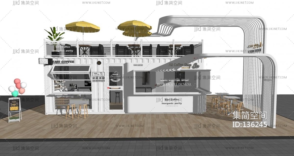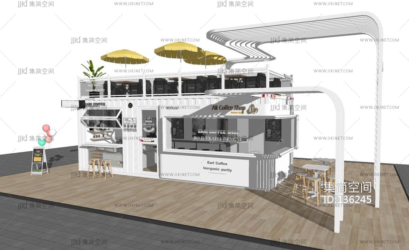 现代集装箱咖啡店SU模型 su草图模型下载 [模型ID:136245]