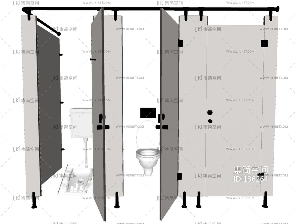 现代公共卫生间隔断蹲便器蹲坑su模型 (1)v su草图模型下载 [模型ID:136264]