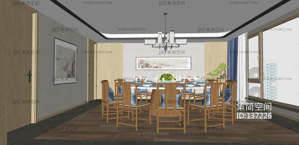 新中式包间su模型 su草图模型下载 [模型ID:137226]