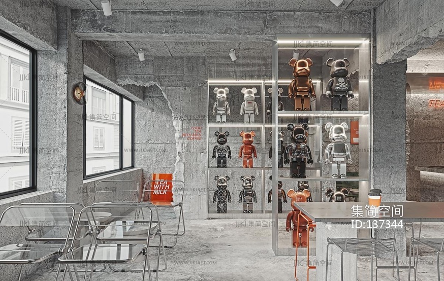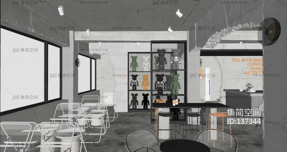 后现代工业风咖啡厅餐厅su模型 su草图模型下载 [模型ID:137344]