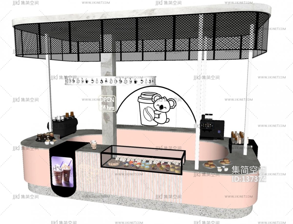 现代咖啡店工作台,售卖台su模型 su草图模型下载 [模型ID:137374]
