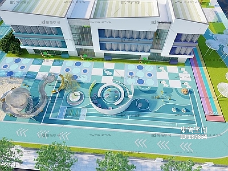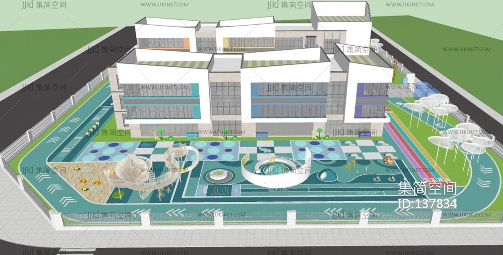 现代幼儿园景观SU模型 su草图模型下载 [模型ID:137834]