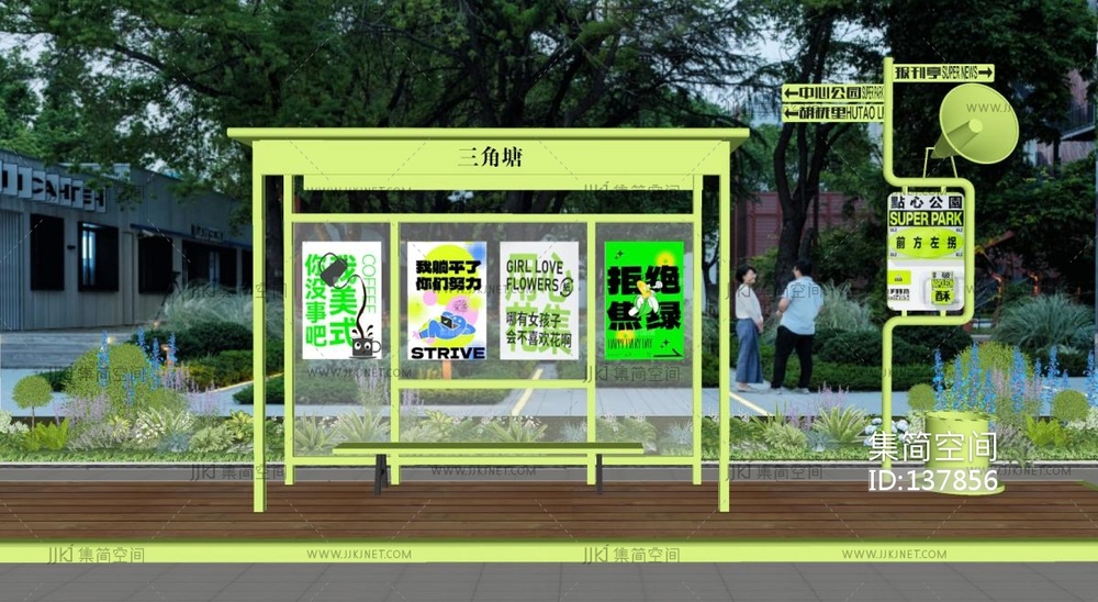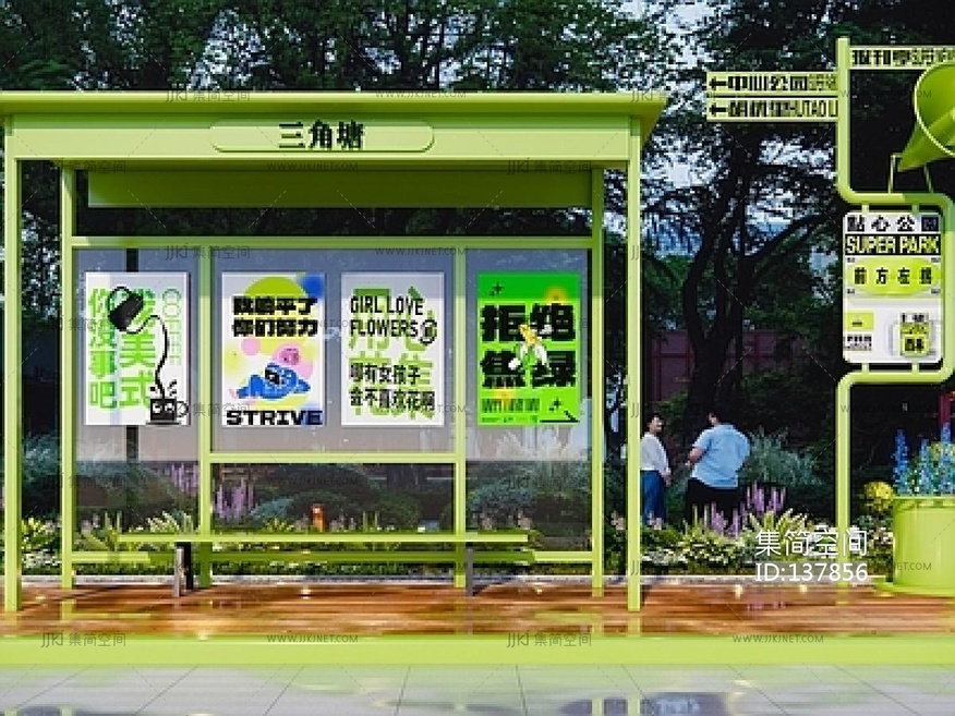 现代公交站台,街边廊架SU模型 su草图模型下载