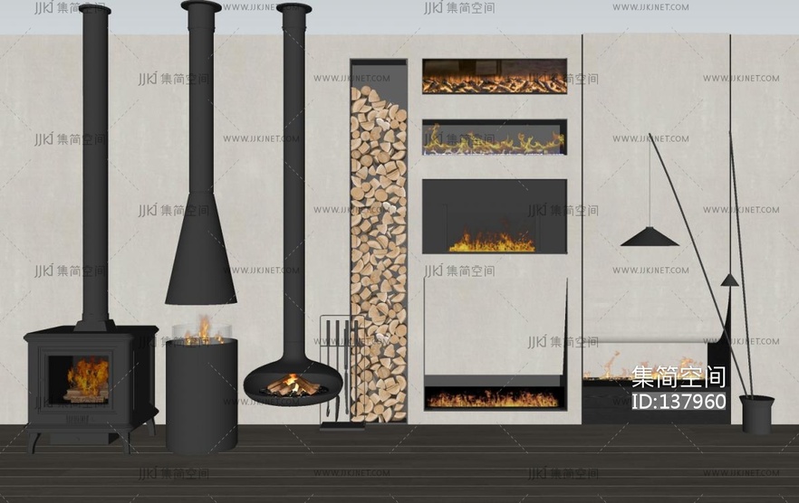 02吊挂壁炉 嵌入式火炉su模型 su草图模型下载 [模型ID:137960]