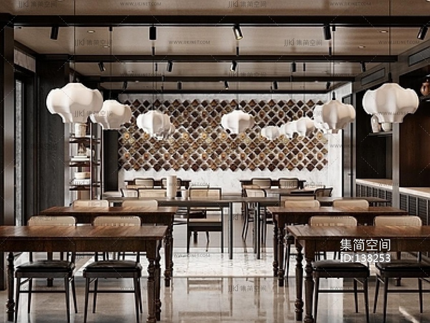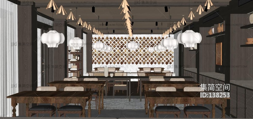 新中式中餐厅SU模型 su草图模型下载 [模型ID:138253]