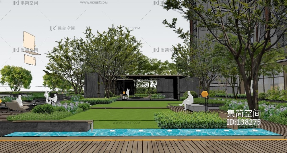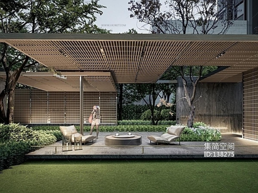 现代廊架SU模型 su草图模型下载 [模型ID:138275]